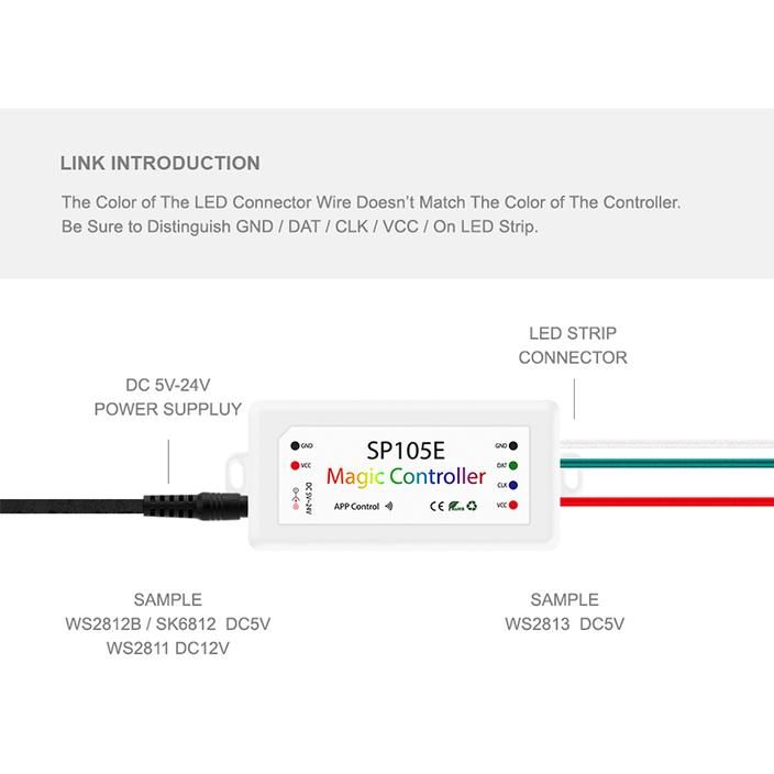 Säätimen tulojännitteen on oltava sama kuin LED-nauhojen käyttöjännite( esim. WS2812B-LED-nauhojen tulisi käyttää 5 V: n virtalähdettä tähän ohjaimeen; WS2811-LED-nauhojen kanssa, tämän ohjaimen tulisi käyttää 12 V: n virtalähdettä) Jos käytät 12V tai 24V virtalähdettä 5V led-valoissa, led-valot vahingoittuvat.